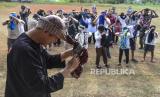 REPUBLIKA.CO.ID, TASIKMALAYA -- Sejumlah anak mengikuti Kaulinan Barudak menggunakan sarung di Lapang Babancong, Desa Margaluyu, Kabupaten Tasikmalaya, Jawa Barat, Jumat (25/8/2023).