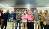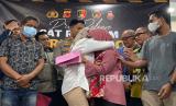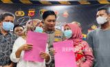 Polres Bogor mengungkapkan dua bayi yang dilahirkan di RS Sentosa Bogor pada Juli 2022 memang tertukar dari hasil tes DNA yang dilakukan pada Senin (21/8/2023). Dua ibu yakni Siti Mauliah dan D pun saling berpelukan dalam konferensi pers pada Jumat (25/8/2023) malam di Mapolres Bogor. (FOTO : Republika/Shabrina Zakaria)
