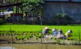 Selama tujuh tahun terakhir areal persawahan di kota itu terus mengalami penyusutan sebanyak 1.218 ha, yakni dari 6.418 ha menjadi 5.200 ha pada tahun 2023. (FOTO : ANTARA FOTO/Iggoy el Fitra)
