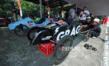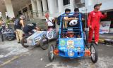 Bermacam kereta peti sabun menunggu giliran untuk mengadu kecepatan pada Lomba Kereta Peti Sabun Ke-10 Tahun 2023 (LKPS X 2023), di halaman Gedung Geologi, Kota Bandung, Sabtu (26/8/2023). (FOTO : Edi Yusuf/Republika)