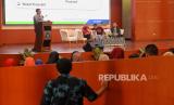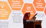 Direktur Pembiayaan Syariah Ditjen Pengelolaan Pembiayaan dan Risiko (DJPPR) Kementerian Keuangan (Kemenkeu) Dwi Irianti Hadiningdyah memaparkan materi dalam acara seminar nasional di Auditorium Fakultas Ekonomi dan Manajemen IPB University, Bogor, Jawa Barat, Sabtu (26/8/2023). Seminar tersebut mengangkat tema Menghadapi Ketidakpastian Global Melalui Optimalisasi Pembangunan Ekonomi Syariah Berkelanjutan yang diikuti oleh tamu undangan dan mahasiswa Fakultas Ekonomi dan Manajemen IPB University. (FOTO : Republika/Thoudy Badai)