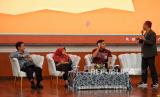 Direktur Pembiayaan Syariah Ditjen Pengelolaan Pembiayaan dan Risiko (DJPPR) Kementerian Keuangan (Kemenkeu) Dwi Irianti Hadiningdyah (kedua kiri) bersama Wakil Kepala Badan Pengembangan Bisnis, Investasi dan Wakaf IPB University Alla Asmara (kiri) dan Direktur Komite Nasional Ekonomi dan Keuangan Syariah (KNEKS) Sutan Emir Hidayat (kedua kanan) saat menjadi panelis dalam acara seminar nasional di Auditorium Fakultas Ekonomi dan Manajemen IPB University, Bogor, Jawa Barat, Sabtu (26/8/2023). Seminar tersebut mengangkat tema Menghadapi Ketidakpastian Global Melalui Optimalisasi Pembangunan Ekonomi Syariah Berkelanjutan yang diikuti oleh tamu undangan dan mahasiswa Fakultas Ekonomi dan Manajemen IPB University. (FOTO : Republika/Thoudy Badai)
