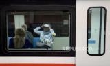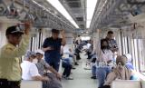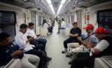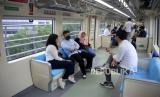 REPUBLIKA.CO.ID, JAKARTA -- Penumpang mengikuti uji coba terbatas LRT Jabodebek di jalur LRT Dukuh Atas-Cawang, Jakarta, Ahad (27/8/2023). LRT Jabodebek dijadwalkan beroperasi melayani penumpang mulai Senin (28/8/2023) di 18 stasiun yang ditetapkan.