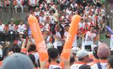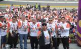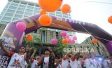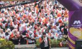 Pegawai BMS mengikuti puncak perayaan milad ke-19 BMS yang diadakan di sela antusiasme masyarakat yang tengah memadati Car Free Day (CFD) di area Sarinah, Jln M.H Thamrin, Jakarta, Ahad (27/8/2023).Bank Mega Syariah (BMS) mengadakan Gerak Bersama Mega Syariah yang dimulai dengan kegiatan Fun Walk bersama jajaran manajemen, pegawai dan nasabah BMS di Anjungan Sarinah, Jalan M.H Thamrin Jakarta. BMS juga memanfaatkan kegiatan sebagai ajang sosialisasi produk dan layanan unggulannya seperti aplikasi mobile banking M-Syariah dan produk kartu pembiayaan Syariah Card. (FOTO : Republika/Tahta Aidilla)
