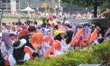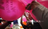 Pekerja membagikan balon saat acara puncak perayaan milad ke-19 BMS yang diadakan di sela antusiasme masyarakat yang tengah memadati Car Free Day (CFD) di area Sarinah, Jln M.H Thamrin, Jakarta, Ahad (27/8/2023).Bank Mega Syariah (BMS) mengadakan Gerak Bersama Mega Syariah yang dimulai dengan kegiatan Fun Walk bersama jajaran manajemen, pegawai dan nasabah BMS di Anjungan Sarinah, Jalan M.H Thamrin Jakarta. BMS juga memanfaatkan kegiatan sebagai ajang sosialisasi produk dan layanan unggulannya seperti aplikasi mobile banking M-Syariah dan produk kartu pembiayaan Syariah Card. (FOTO : Republika/Tahta Aidilla)