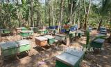 REPUBLIKA.CO.ID, SEMARANG -- Anggota kelompok peternak Sumber Nektar merawat budi daya sarang lebah madu jenis mellifera di Ungaran, Kabupaten Semarang, Jawa Tengah, Selasa (29/8/2023).