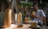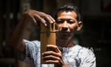 Perajin menyelesaikan pembuatan botol air minum (tumbler) berbahan bambu di workshop Project Bamboo, desa Pendem, Mojogedang, Karanganyar, Jawa Tengah, Rabu (30/8/2023). Kerajinan tersebut dijual dengan harga Rp15 ribu hingga Rp125 ribu dan telah dipasarkan ke sejumlah kota diantaranya Solo, Jakarta, Bandung, hingga Bali dengan memanfaatkan media daring. (FOTO : ANTARA FOTO/Mohammad Ayudha)
