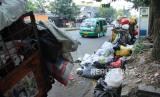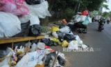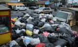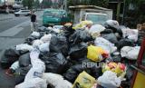 Tumpukan sampah terlihat di sejumlah ruas jalan raya kota Bandung.