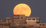 Super Blue Moon muncul di atas benteng kuno di Taman Nasional Migdal Tsedek dekat Rosh Haayin, Israel, (30/8/2023). (FOTO : EPA-EFE/ABIR SULTAN)