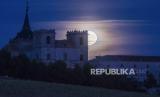 Bulan Biru purnama terbit di atas Biara Ucles di Cuenca, Spanyol, (30/8/2023). (FOTO : EPA-EFE/FERNANDO VILLAR)