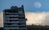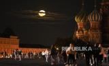 The August Super Blue Moon sets behind a historical building and the St. Basil (FOTO : AP Photo/Alexander Zemlianichenko)