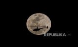 Sebuah helikopter lewat di depan bulan super biru di kota Sao Paulo, Brasil, (30/8/2023). (FOTO : EPA-EFE/Isaac Fontana)
