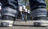 REPUBLIKA.CO.ID, BANDUNG -- Sejumlah jurnalis bersama pers mahasiswa dan aktivis melakukan aksi bersama di Taman Vanda, Jalan Merdeka, Kota Bandung, Kamis (31/8/2023).
