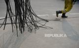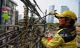 REPUBLIKA.CO.ID, SETIABUDI -- Petugas Bina Marga DKI Jakarta melakukan penataan kabel udara di Jalan Guru Mughni, Setiabudi, Jakarta Selatan, Kamis (31/8/2023).
