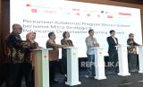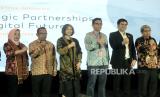 Co-Founder & Chief Operating Officer DOKU Nabilah Alsagoff (ketiga kiri) bersama dengan VP Head of Market Development Mastercard Indonesia Hamid Farid (kedua kanan), serta mitra-mitra strategis lainnya resmi meluncurkan kemitraan bersama untuk akselerasi inklusi digital dan keuangan UMKM yang akan diwujudkan melalui Strive Digitalization Learning Network di Jakarta, Kamis (31/8/2023). Sebagai salah satu mitra dalam program Mastercard Strive Indonesia, DOKU berperan dalam menyediakan akses bagi UMKM untuk go digital melalui ragam metode pembayaran yang dapat diakses dengan mudah dengan layanan Juragan DOKU. Mastercard Strive Indonesia berpusat pada penguatan ekosistem pendukung usaha kecil dengan menjawab tiga tantangan utama yang dihadapi oleh UMKM, yaitu mendapatkan modal, go digital, serta mengembangkan jaringan dan pengetahuan. (FOTO : Republika/Edwin Dwi Putranto)