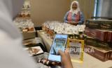 Pembeli menggunakan qris saat berbelanja di pameran produk UMKM yang digelar dalam acara Strategic Partnership for Digital Future di Jakarta, Kamis (31/8/2023). Sebagai salah satu mitra dalam program Mastercard Strive Indonesia, DOKU berperan dalam menyediakan akses bagi UMKM untuk go digital melalui ragam metode pembayaran yang dapat diakses dengan mudah dengan layanan Juragan DOKU. Mastercard Strive Indonesia berpusat pada penguatan ekosistem pendukung usaha kecil dengan menjawab tiga tantangan utama yang dihadapi oleh UMKM, yaitu mendapatkan modal, go digital, serta mengembangkan jaringan dan pengetahuan. (FOTO : Republika/Edwin Dwi Putranto)
