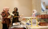 Co-Founder dan Chief Operating Officer DOKU Nabilah Alsagoff (kedua kanan) bersama Ketua Umum Perkumpulan Wirausaha Pekerja Migran Indonesia Sulistyaningsih (kiri) mengunjungi pameran produk UMKM yang digelar dalam acara Strategic Partnership for Digital Future di Jakarta, Kamis (31/8/2023). Sebagai salah satu mitra dalam program Mastercard Strive Indonesia, DOKU berperan dalam menyediakan akses bagi UMKM untuk go digital melalui ragam metode pembayaran yang dapat diakses dengan mudah dengan layanan Juragan DOKU. Mastercard Strive Indonesia berpusat pada penguatan ekosistem pendukung usaha kecil dengan menjawab tiga tantangan utama yang dihadapi oleh UMKM, yaitu mendapatkan modal, go digital, serta mengembangkan jaringan dan pengetahuan. (FOTO : Republika/Edwin Dwi Putranto)