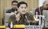 REPUBLIKA.CO.ID -- Menteri BUMN Erick Thohir menyampaikan paparan pada rapat kerja dengan Komisi VI DPR di Kompleks Parlemen, Senayan, Jakarta, Kamis (31/8/2023).