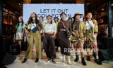 Model memperagakan koleksi terbaru EIGER Women saat peluncuran di Jakarta, Kamis (31/8/2023). Eiger Adventure (EIGER) brand penyedia perlengkapan luar ruang meluncurkan koleksi terbarunya bertajuk “EIGER Women: Let it Out”. EIGER Women “Let it Out” kali ini mengangkat grafis yang terinspirasi dari alam dengan warna-warna bumi, koleksi ini dirancang dengan potongan loose, sehingga nyaman digunakan untuk bergerak bebas. (FOTO : Republika/Thoudy Badai)