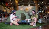 Influencer Sintya Marisca (kiri) dan Poppy Sovia (kanan) berbincang bersama saat peluncuran EIGER Women di Jakarta, Kamis (31/8/2023). Eiger Adventure (EIGER) brand penyedia perlengkapan luar ruang meluncurkan koleksi terbarunya bertajuk “EIGER Women: Let it Out”. EIGER Women “Let it Out” kali ini mengangkat grafis yang terinspirasi dari alam dengan warna-warna bumi, koleksi ini dirancang dengan potongan loose, sehingga nyaman digunakan untuk bergerak bebas. (FOTO : Republika/Thoudy Badai)