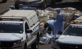 Petugas medis berdiri di dekat jenazah korban kebakaran mematikan di pusat kota Johannesburg, Afrika Selatan, Kamis, (31/8/2023). (FOTO : AP Photo/Jerome Delay)