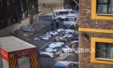Petugas medis dan darurat bekerja di lokasi kebakaran mematikan di pusat kota Johannesburg, Afrika Selatan, Kamis, (31/8/2023). (FOTO : AP Photo/Jerome Delay)