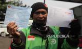 Pengendara motor memperlihatkan surat tilang dan surak keterangan tidak lolos uji emisi di Subdit Gakkum Ditlantas Polda Metro Jaya, Jakarta, Jumat (1/9/2023). Direktorat Lalu Lintas Polda Metro Jaya bersama Dinas Lingkungan Hidup DKI Jakarta mulai memberlakukan tilang uji emisi terhadap kendaraan roda dua dan roda empat sebagai upaya agar masyarakat ikut berkontribusi untuk mengatasi permasalahan buruknya kualitas udara di Ibu Kota. Denda sanksi tilang bagi kendaraan yang tidak lulus uji emisi sebesar Rp 250.000 bagi kendaraan motor dan Rp 500.000 bagi kendaraan mobil. (FOTO : Republika/Putra M. Akbar)