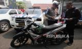 Polisi menilang kendaraan yang tidak lolos uji emisi di Subdit Gakkum Ditlantas Polda Metro Jaya, Jakarta, Jumat (1/9/2023). Direktorat Lalu Lintas Polda Metro Jaya bersama Dinas Lingkungan Hidup DKI Jakarta mulai memberlakukan tilang uji emisi terhadap kendaraan roda dua dan roda empat sebagai upaya agar masyarakat ikut berkontribusi untuk mengatasi permasalahan buruknya kualitas udara di Ibu Kota. Denda sanksi tilang bagi kendaraan yang tidak lulus uji emisi sebesar Rp 250.000 bagi kendaraan motor dan Rp 500.000 bagi kendaraan mobil. (FOTO : Republika/Putra M. Akbar)