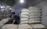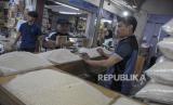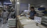 REPUBLIKA.CO.ID, BANDUNG -- Pedagang beras melayani pembeli di Pasar Kosambi, Kota Bandung, Jawa Barat, Jumat (1/9/2023).