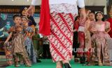 Sejumlah anak memperagakan busana kebaya dan batik di Pendopo Kabupaten Jombang, Jawa Timur, Jumat (1/9/2023). Peragaan busana yang digelar Komunitas Kain dan Kebaya Indonesia itu untuk melestarikan serta mengenalkan pakaian tradisional khas Indonesia kepada generasi muda sehingga meningkatkan minat berpakaian kebaya maupun batik. (FOTO : ANTARA FOTO/Syaiful Arif)