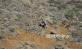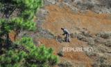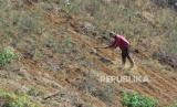 Petani membersihkan semak yang telah mengering di perbukitan kawasan Cimenyan, Kabupaten Bandung, Jumat (1/9/2023). Meski kemarau, para petani sayuran di kawasan Bandung Utara (KBU) tetap melakukan aktivitasnya seperti biasa. Meski demikian mereka harus ekstra kerja keras untuk mengolah dan mengairi lahan. (FOTO : Edi Yusuf/Republika)