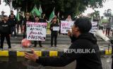 REPUBLIKA.CO.ID,LHOKSEUMAWE -- Aktivis dari Himpunan Mahasiswa Islam (HMI) menggelar Aksi Solidaritas Kemanusiaan atas pembunuhan seorang warga Aceh, Imam Maskyur, di Lhokseumawe, Aceh, Jumat (01/09/2023).