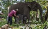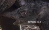 REPUBLIKA.CO.ID,PELALAWAN -- Seekor anak gajah sumatra (Elephas maximus sumatranus) yang baru lahir berada di dekat induknya di Camp Flying Squad, Taman Nasional Tesso Nilo, Kabupaten Pelalawan, Provinsi Riau, Jumat (1/9/2023).