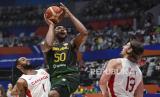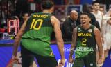 REPUBLIKA.CO.ID,JAKARTA -- Pebasket Timnas basket Brasil Yago Santos (kanan) berselebrasi dengan rekannya Tim Soares (kiri) usai melawan Timnas basket Kanada dalam pertandingan babak kedua fase Grup L FIBA World Cup 2023 di Indonesia Arena, Gelora Bung Karno, Senayan, Jakarta, Jumat (1/9/2023). Timnas basket Brasil kalahkan Timnas basket Kanada dengan skor akhir 69-65.