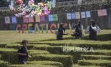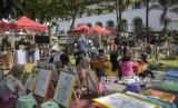 Pengunjung beraktivitas di area West Java Festival 2023 di Gedung Sate, Kota Bandung, Jawa Barat, Sabtu (2/9/2023). Pemerintah Provinsi Jawa Barat menggelar West Java Festival 2023 yang merupakan bagian dari syukuran 78 tahun Provinsi Jawa Barat. Acara yang digelar selama dua hari tersebut diisi dengan festival literasi digitel, bazar umkm, bazar produk unggulan, produk daur ulang, serta berbagai pameran. (FOTO : ABDAN SYAKURA/REPUBLIKA)