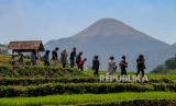 REPUBLIKA.CO.ID, MOJOKERTO -- Sejumlah pengunjung menikmati suasana persawahan di Desa Wisata Ketapanrame, Mojokerto, Jawa Timur, Ahad (3/9/2023).