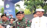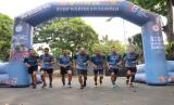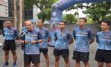 REPUBLIKA.CO.ID, JAKARTA -- Anggota TNI berlari melakukan quadratlon saat pelepasan kampanye lingkungan di Jakarta, Jumat (1/9/2023).