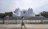 Warga berolahraga di dekat proyek penataan lanjutan dan revitalisasi kawasan Monumen Perjuangan Rakyat Jawa Barat (Monpera) di Kota Bandung, Jawa Barat, Senin (4/9/2023). Pemerintah Provinsi Jawa Barat melakukan penataan dan revitalisasi kawasan Monpera secara berkala yang bakal menjadi kawasan wisata ruang publik dengan sejumlah fasilitas seperti mushola, kawasan kuliner, griya karya, shelter sejarah, tempat bermain dan teater rakyat. Hingga saat ini, progres penataan dan revitalisasi tersebut mencapai 55 persen dan ditargetkan rampung pada akhir tahun 2023. (FOTO : ABDAN SYAKURA/REPUBLIKA)
