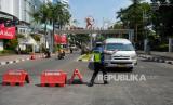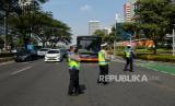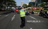 Petugas Kepolisian melakukan penutupan sementara saat delegasi KTT ASEAN melintas di ruas jalan Jenderal Sudirman, Jakarta, Senin (4/9/2023). Polda Metro Jaya bersama pemprov DKI Jakarta melakukan rekayasa lalu lintas di 29 ruas jalan di sekitar lokasi KKT ASEAN selama rangkaian kegiatan KTT ASEAN berlangsung. (FOTO : Republika/Thoudy Badai)