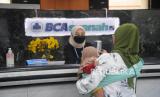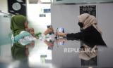 Nasabah menerima cinderamata usai melakukan pembukaan rekening online dalam rangka memperingati Hari Pelanggan Nasional, di Kantor Cabang BCA Syariah Jatinegara, Jakarta (04/09/2023). BCA Syariah senantiasa mengedepankan inovasi dan kolaborasi dalam menghadirkan beragam solusi dan layanan perbankan syariah yang mumpuni kepada segenap pelanggan dan nasabah, salah satunya dengan meluncurkan fitur pembukaan rekening online yang dapat diakses kapan pun dan dimana pun oleh nasabah melalui kanal BCA Syariah Mobile . Transaksi mobile banking di BCA Syariah menunjukkan pertumbuhan yang berkelanjutan. Per Juni 2023, transaksi mobile banking BCA Syariah tercatat sebesar 6,39 juta transaksi dengan pertumbuhan sebesar 47% secara tahunan. (FOTO : Republika/Tahta Aidilla)