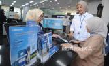 Direktur BCA Syariah Houda Muljanti (kanan) mendampingi nasabah melakukan pembukaan rekening online dalam rangka memperingati Hari Pelanggan Nasional, di Kantor Cabang BCA Syariah Jatinegara, Jakarta (4/9/2023). BCA Syariah senantiasa mengedepankan inovasi dan kolaborasi dalam menghadirkan beragam solusi dan layanan perbankan syariah yang mumpuni kepada segenap pelanggan dan nasabah, salah satunya dengan meluncurkan fitur pembukaan rekening online yang dapat diakses kapan pun dan dimana pun oleh nasabah melalui kanal BCA Syariah Mobile . Transaksi mobile banking di BCA Syariah menunjukkan pertumbuhan yang berkelanjutan. Per Juni 2023, transaksi mobile banking BCA Syariah tercatat sebesar 6,39 juta transaksi dengan pertumbuhan sebesar 47% secara tahunan. (FOTO : Republika/Tahta Aidilla)