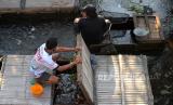 Warga membersihan ikan yang dipanen dari keramba di Sungai Widuri, Keloran, Bantul, Yogyakarta, Senin (4/9/2023). Meski musim kemarau, warga Keloran tetap memelihara ikan dalam keramba. Hal ini dilakukan karena adanya tuk atau sumber air di sekitar sungai, sehingga aliran sungai tidak pernah mengering. Namun, saat musim kemarau karena rentan penyakit warga hanya membesarkan ikan dan tidak penebaran benih ikan. Lebih dari 50 keramba milik warga Keloran yang ditanam di Sungai Widuri. Selain untuk keperluan sehari-hari juga untuk menambah penghasilan. (FOTO : Republika/Wihdan Hidayat)