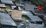 Warga usai memanen ikan dalam keramba di Sungai Widuri, Keloran, Bantul, Yogyakarta, Senin (4/9/2023). Meski musim kemarau, warga Keloran tetap memelihara ikan dalam keramba. Hal ini dilakukan karena adanya tuk atau sumber air di sekitar sungai, sehingga aliran sungai tidak pernah mengering. Namun, saat musim kemarau karena rentan penyakit warga hanya membesarkan ikan dan tidak penebaran benih ikan. Lebih dari 50 keramba milik warga Keloran yang ditanam di Sungai Widuri. Selain untuk keperluan sehari-hari juga untuk menambah penghasilan. (FOTO : Republika/Wihdan Hidayat)