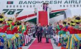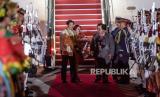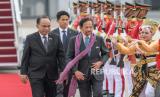 REPUBLIKA.CO.ID, TANGERANG -- Presiden Bangladesh Mohammed Shahabuddin, Sultan Brunei Darussalam Hassanal Bolkiah dan Presiden Filipina Ferdinand Marcos Jr didampingi Menteri Lingkungan Hidup dan Kehutanan Siti Nurbaya dan Menkominfo Budi Arie Setiadi berjalan menuju kendaraan saat tiba di Terminal VVIP Bandara Soekarno-Hatta, Banten, Senin (4/9/2023).