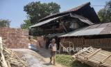 Pekerja menyelesaikan pembuatan batu bata merah di Cihampelas, Kabupaten Bandung Barat, Jawa Barat, Selasa (5/9/2023). Berdasarkan keterangan pekerja, saat musim kemarau produksi batu bata mengalami peningkatan dari 3.000 menjadi 6.000 buah per hari yang dijual dengan harga Rp650 per buah. (FOTO : ABDAN SYAKURA/REPUBLIKA)