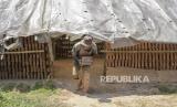 Pekerja menyiapkan batu bata merah untuk dibakar di Cihampelas, Kabupaten Bandung Barat, Jawa Barat, Selasa (5/9/2023). Berdasarkan keterangan pekerja, saat musim kemarau produksi batu bata mengalami peningkatan dari 3.000 menjadi 6.000 buah per hari yang dijual dengan harga Rp650 per buah. (FOTO : ABDAN SYAKURA/REPUBLIKA)