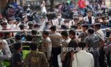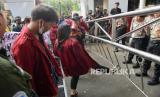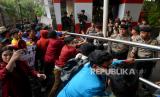 Mahasiswa yang tergabung dalam Solidaritas BEM Indonesia Menggugat melakukan aksi di depan Gedung Merah Putih KPK, Jakarta, Selasa (5/9/2023). Dalam aksinya mereka menuntut KPK untuk segera menangkap buronan Harun Masiku yang terjeeat kasus dugaan suap terhadap Komisioner KPU Wahyu Setiawan. Selain itu, massa aksi juga menuntut KPK untuk tidak tebang pilih dalam pengungkapan dan penindakan kasus korupsi. (FOTO : Republika/Thoudy Badai)