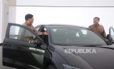 President of Hyundai Motor Asean Headquarter Youngtack Lee (kiri), CEO PT Lippo Malls Indonesia (LMI) Henry Riady berbincang diantara mobil listrik Ioniq 6 usai penandatanganan kerjasama di Jakarta, Selasa (5/9/2023). PT Hyundai Motors Indonesia, bekerjasama dengan PT Lippo Malls Indonesia (LMI), akan memperluas jaringan charging station untuk kendaraan listrik (EV) di 52 pusat perbelanjaan di bawah naungan LMI di berbagai kota di Indonesia. (FOTO : Republika/ Tahta Aidilla)