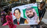 Siswa Sekolah Seni Gurukul memegang potret perdana menteri Jepang dan Putra Mahkota Arab Saudi untuk KTT G20 mendatang, di Mumbai, India, Selasa (5/8/2023). (FOTO : EPA-EFE/DIVYAKANT SOLANKI)