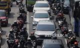 Sejumlah kendaraan terjebak kemacetan di Jalan Gatot Subroto, Jakarta Selatan, Rabu (6/9/2023). Rekayasa lalu lintas pada pukul 07.00 WIB hingga 10.00 WIB yang dilakukan untuk penyelenggaraan KTT ASEAN 2023, membuat kemacetan panjang di sejumlah ruas jalan protokol Ibu Kota. (FOTO : Republika/Putra M. Akbar)